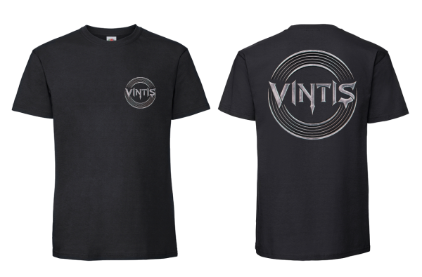 T-Shirt mit kleinem Logo auf der Vorderseite, großes Logo auf der Rückseite. Digitaldruck.